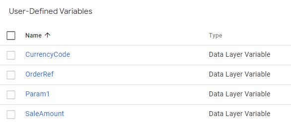 - Create a user-defined variable for the value of OrderId in the dataLayer object, following the same steps as for Currency and using the following names: